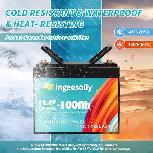 ????? Automatic BMS? 12V100Ah Lithium battery pack adopts Class A LiFePO4 cells and excellent 100A BMS system, BMS system to protect it from overcharging, overcharging, discharge of overcurrent, short circuit, high and low temperature. IP65 waterproof rating for versatile indoor/outdoor installation.