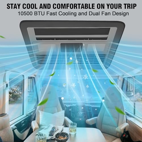 INVERTER COOLING & LOW-NOISE TECH - Our inverter RV air conditoner will adjusts its operating frequency to the environment, thus reducing energy consumption. The a/c unit is equipped with a household-type ultra-quiet evaporator, intelligent temperature control, and operation below 45dB to create a comfortable space.