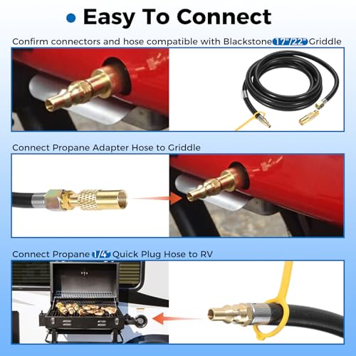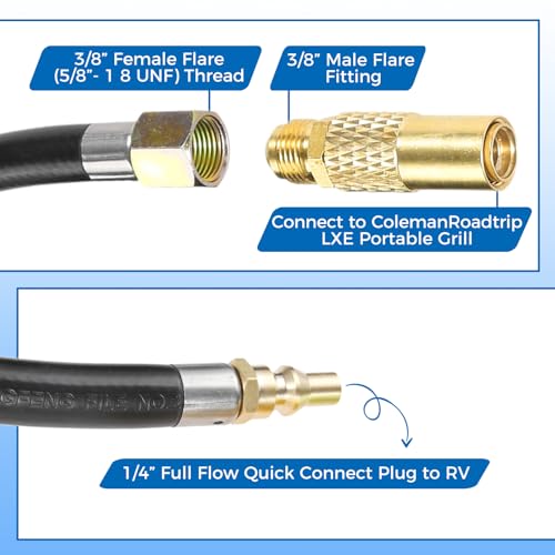 ?MUST-HAVE?: 12 Ft Propane Quick-Connect Hose and Valve provide a quick connect propane connection to connect most low-pressure grills to RV's onboard propane supply. Very safe and convenient. A must-have if you are an RVer.