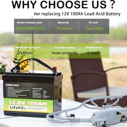 ?Mini Size & Light Weight?12V 100Ah Lithium Iron Phosphate Battery's size is only 3/4 of other LiFePO4 battery, 2/3 of lead-acid battery, which makes it more convenient to carry. Variety of mounting directions, and no risk of leakage, make it safer to use. Most RV need two batteries at least, the compact size makes it easier to place and connect in the battery box.