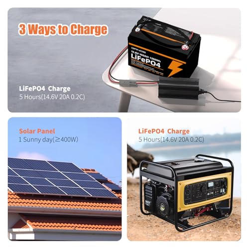 Wide Application: The GRNOE 12V 100Ah LiFePO4 battery delivers rapid and reliable power, supporting a max discharge current of 300A for 3 seconds and IP65 waterproof which is very suitable for 12V 36-55lbs trolling motor and can also be used in off-grid systems, RVs battery, home backup, Automotive Replacement Batteries and other fields. P.S. The battery is suitable for Trolling Motors, Marine, Boat rather than Start-Up.