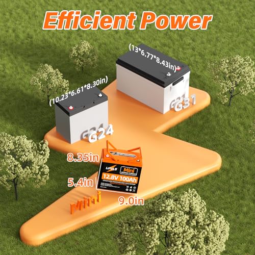 ?Mini Size, Max Power? The LIPULS 12V 100Ah MINI LiFePO4 Battery packs maximum power into a compact design. Measuring just 9.0x5.4x8.3 inches, it’s 35% smaller than traditional Group 24 batteries and 80% lighter than Group 31 lead-acid batteries. This ultra-compact size makes it easy to replace your old SLA battery, offering hassle-free installation and maintenance. Perfect for RVs, boats, and off-grid systems, this mini battery delivers the same 1280Wh energy storage in a fraction of the space.