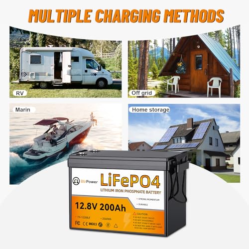 ?Super safe to use?100% safe, nontoxic, renewable energy. LiFepo4 battery 12V 200Ah will not burn when overcharged, over-discharged, over-current or short circuit, and can withstand high temperatures without decomposition. Built-in 100A BMS can handle cell balancing, low & high voltage cutoff, short circuit protection and temperature protection. Without memory effect, no matter what state the battery is, it can be used as soon as it is charged.