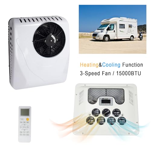 ??Cooling and Heating Capacity?15,000 BTU of the 12v air conditioner can achieve rapid cooling. This RV roof air conditioner has cooling and heating functions. 12v rv air conditioner can quickly cool down your RV in hot summers and provide heating in cold winters. Experience the comfort of a car worry free all year round.