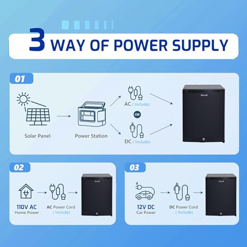 2-Way Power Semi Truck Fridge: This mini refrigerator operates on 12V DC and 110V AC, making it perfect for RV travel and home use. 12V RV refrigerator features a lock to prevent food from falling during RV transit and includes a car cigarette lighter adapter for convenience