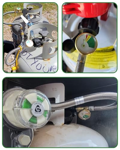 Colord Pressure Gauge —— The gauge can show the propane capacity in the tank, in addition, the fluorescent function makes it work normally in a dark environment, I believe the 15-inch rv propane hoses will be a good helper for your RV camping.