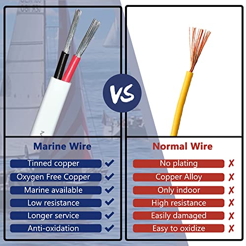 Multi-Use: the marine electrical wire used in pontoon boats/bass boats/boat trailers/ fish finders/truck/RV/Van/ATV trailer electrical system: wiring light (spotlight, underwater light, flood light, navigation lights, headlight), solar inverters, shore power, bilge pump, extend new bank charger leads, speaker wire, electric brake wires, radio stereo, alarm, etc