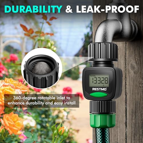 Rugged design with premium heavy duty ABS material, this water meter is weatherproof and durable, great to resist UV, sunshine, and rain. The IPX6 waterproof grade ensures more stability for outdoor use. 360° rotating inlet and 3/4" hose thread easily connects to garden hoses or hose nozzles without additional adapters.
