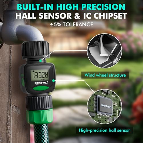 Built-in with hall type sensor and IC chipset, which provide more accurate measurement and precise calculations. The measurement tolerance is less than 5%, great to measure how much amount of water are used and prevent over-watering.