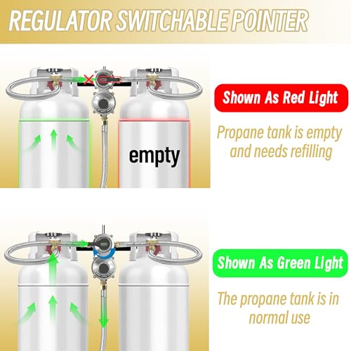?Efficient Functions?-This 2-Stage Auto Changeover Gas Regulator Is Equipped With Two Ports To Connect Two Propane Tanks At The Same Time, It Won't Stop Working Just Because One Of The Tanks Runs Out Of Gas, And It Will Automatically Switch To The Backup Tank When The Main Tank Is Low To Provide An Uninterrupted Supply Of Propane Gas To Your Equipment. At The Same Time, The Indicator Light Will Change Color, So That You Know That The Tank Is Out Of Propane And Needs To Be Refilled.