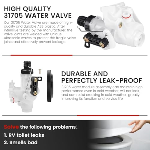????????????????????????????????????????? ???????????? ???????????? ?????????????????????: 31705 thetford rv toilet water valve kit are made of high-quality ABS. After intensive testing by the manufacturer, the valve joints are welded with unique ultrasonic waves to protect the fragile valve joints and effectively prevent leakage. The inside of the rv toilet valve is made of elastic fiber material, which has high elasticity, high force strength and greater flexibility. It will not leak and can resist cracking even in cold weather, greatly improving its function and service life