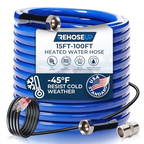 Smart Heat System: Smart self-regulating external thermostat is ideal for hose from freezing to -45?. Heated water hose for RV has strong cold resistance and water flows unimpeded in extreme cold winter.In the midnight of the US, temperature drops to -35?