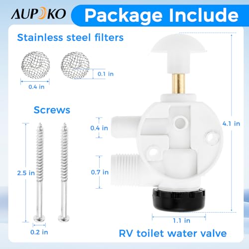 [Packages] Kit includes 1pc x RV toilet water valve, 2pcs x screws, 2pcs x stainless steel filters. Please check the part number before purchasing to ensure proper fit.