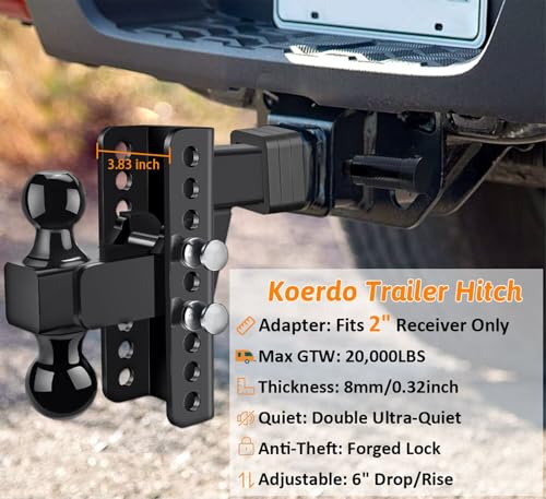 ?VERSATILE COMPATIBILITY- FITS 99% TOWING NEEDS, FITS 2" RECEIVER ONLY? - This Koerdo Adjustable trailer hitch with 2.0 inch receiver effortlessly fits a wide arrange of connectors including heavy Trucks, RVS, Farm Trailers, Cargo Trailer, Live stock trailer, Campers and even off-road vehicles like ATVS and Motorcycles. So whether you are towing a small utility trailer or a heavy duty camper, this hitch will never let you down.