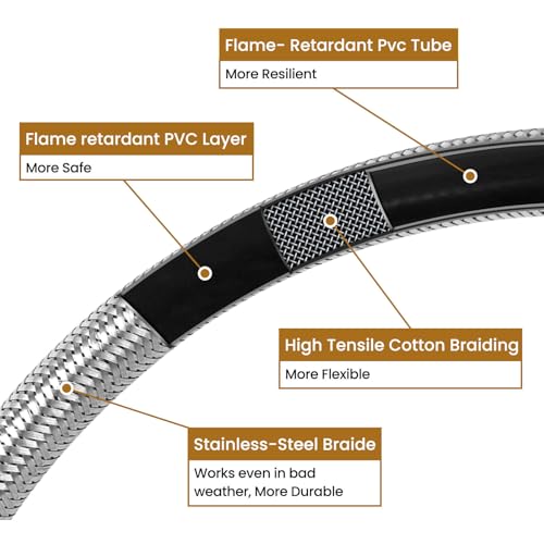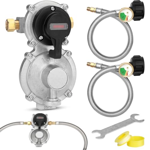 ?????CSA Certified?The RV propane regulator is CSA certified, It can ensure air tightness and safety. The Inlet is made of 100% solid brass, which is resistant to corrosion and safer to use, and the RV propane hose is made of stainless steel braid.