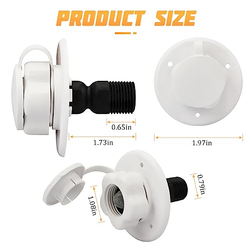 ?Installation?: RV fresh water inlet can fit tightly without drilling any holes. You just need to remove the screws, unscrew the existing flange, then thread the silicone band (not included) on the valve, and screw the water line flange to the fitting.