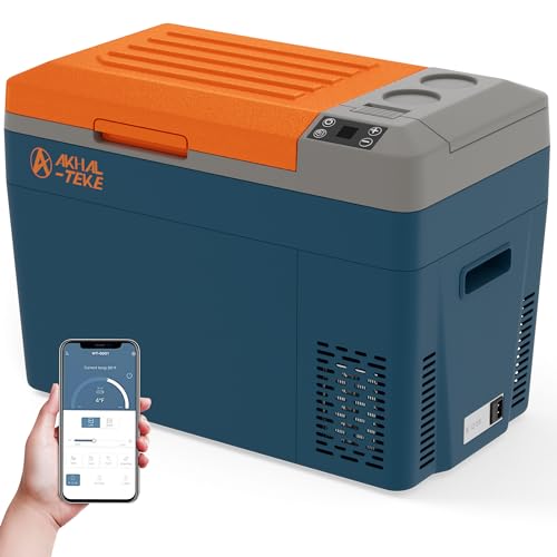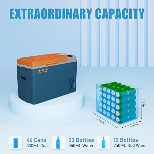 PORTABLE CAR REFRIGERATOR: AKHAL-TEKE 12V car refrigerator has 13.8"x13"x9.8" cooling area which can storage 46 cans of 330ml baverage or 32 Quart of food. Perfect for camping, travel and long drive with your vehicle