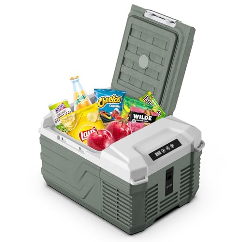DUAL POWER OPTIONS: Equipped with 100/240V AC and 12/24 DC adapter, allows you to use the electric cooler at home or in the car, enjoy the flexibility with two power supply modes. The battery protection system prevents the portable fridge draining your vehicle's battery, providing peace of mind during your trips.