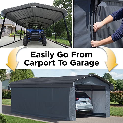 QUALITY CARPORT: 12' x 20' carport is a multi-use shelter that protects vehicles, boats, tractors, and even picnic areas and included enclosure kit turns your Arrow carport into a garage
