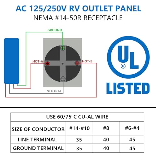 ?UL Listed?NEMA 14-50R Receptacle 125/250V with type 3R weatherproof enclosure, which is designed for providing safe and reliable power for your RV, EV car or trailer.