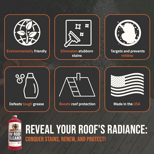 TOUGH ON STAINS, FRIENDLY TO THE EARTH: This RV roof cleaner and conditioner is non-abrasive, biodegradable and can be safely rinsed onto any campsite without harming surrounding plants or wildlife. Use a trusted formula to clean the safe and smart way!