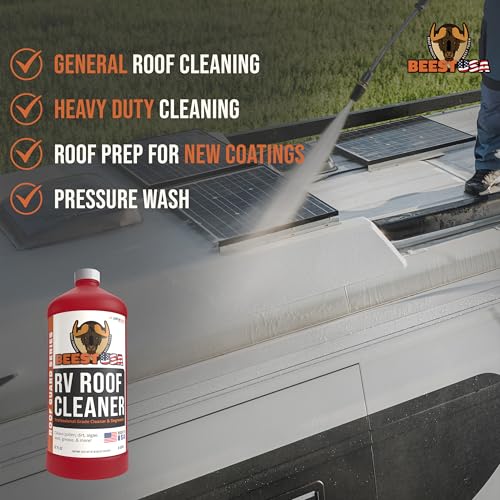 REMOVE DIRT & STAINS LIKE NEVER BEFORE: The best RV rubber roof cleaner is here. Unlike other cleaners out there, this is a professional grade cleaner & degreaser that acts as a RV cleaner. Clean pollen, dirt, soot, grease, moss & more! Use before applying BEEST primer & BEEST RV Roof Coating for proper prep.