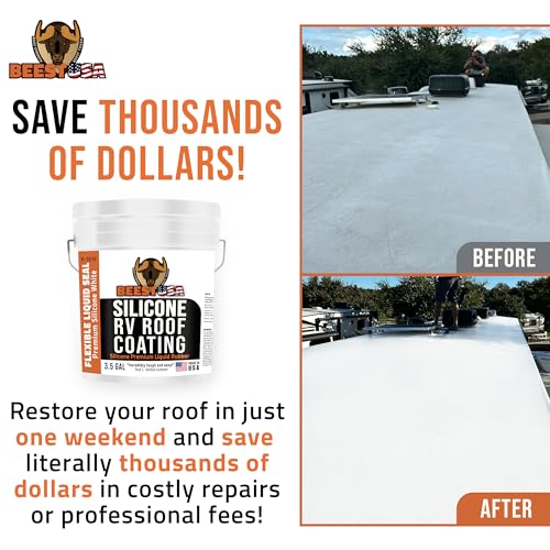 BEEST RV Roof Coating Silicone White, 3.5G Covers up to 117 sq ft (2 Coats)| Liquid Rubber RV Roof Sealant for Trailer, Camper & Metal Building - Elastomeric Repair Coating, EPDM, TPO Sealer, sealant