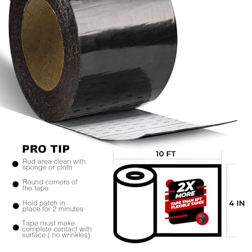 Black RV Roof Sealant Tape, 4" x 10' Waterproof Repair Seal Tape – Extra Thick, UV-Resistant, Weatherproof Patch for Permanent Leak Sealing on RVs, Trailers, and Mobile Homes