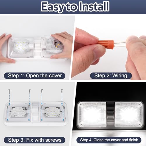 Quick and Easy Installation: The LED camper light is user-friendly, featuring two polarity-free 12V wires, for easy connect without worrying about polarity. With nuts and screws included, you can set them up in just 5-8 minutes for a hassle-free lighting solution.