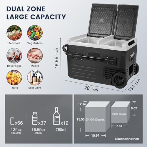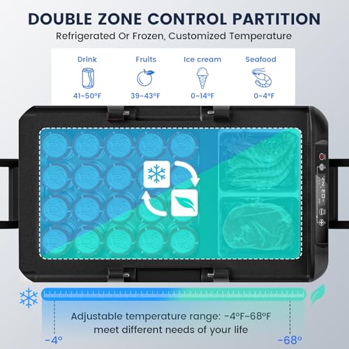 ?Dual Zones & LCD Panel?- The Blogole 12 Volt Car Refrigerator features two zones that can be easily switched between refrigerator and freezer modes, providing a generous 48 Quart (45L) storage capacity for all your food storage needs. The refrigerator is equipped with a user-friendly LCD control panel for precise temperature adjustments.