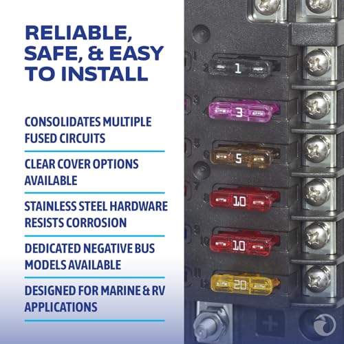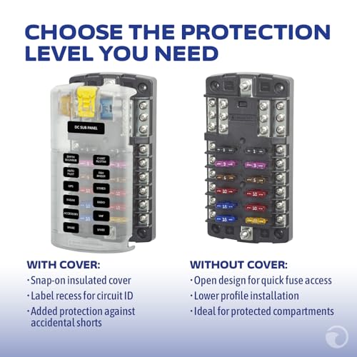 Blue Sea Systems Fuse Block ST Blade 12 Circuit with Ground and Cover, part number 5026, can be used for 24-hour circuits