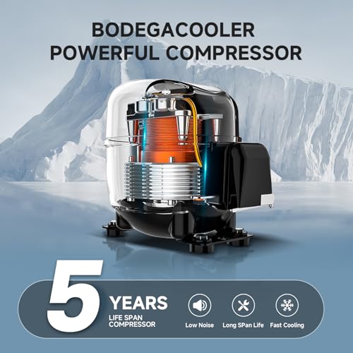 Fast Cooling & Low Energy Consumption: BODEGACOOLER car fridge with compressor refrigeration technology, this 12v car refrigerator could achieve 15min fast cooling from 68? to 32? and 50 min from 32? to -4?. Say goodbye to the hassle of using ice, moreover, this portable refrigerator boasts an average energy consumption of only 45W, even when running on MAX mode, it consumes far less than 1kWh per day