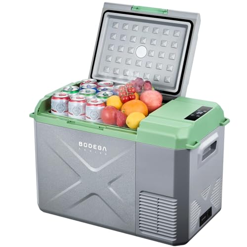 Portable Car Freezer : BODEGACOOLER car refrigerator offering a practical 26 Quart capacity, which is the perfect companion for your short trips. It can work as both a fridge and a freezer, allowing truck drivers, boat owners, and campers to store a variety of food and drinks for longer journeys. Its compact size and easy portability make it convenient for travel, enabling you to fully enjoy your adventures