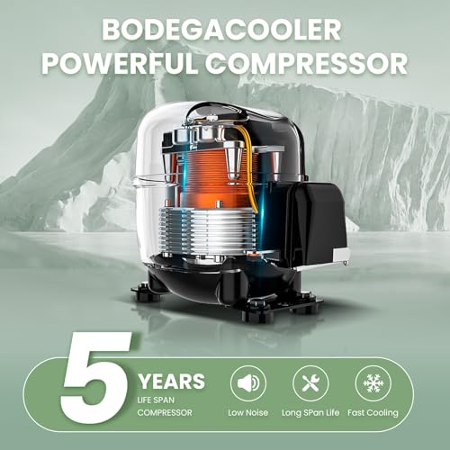 Fast Cooling & Low Energy Consumption : BODEGACOOLER car fridge with compressor refrigeration technology, this 12 v car refrigerator could achieve 15 min fast cooling from 68 ? to 32 ? and 50 min from 32 ? to -4 ?. Say goodbye to the hassle of using ice, moreover, this portable refrigerator boasts an average energy consumption of only 45 W, even when running on MAX mode, it consumes far less than 1 kWh per day