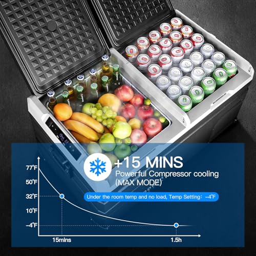 ?DUAL ZONE AND APP CONTROL CAR FRIDGE?BODEGACOOLER 12Volt refrigerator is equipped with two zone, the two zones can be independently controlled for temperature.Left zone 54.6L (58 Quart) + right zone 35.6L (37 Quart) = 90L (95 Quart).This powerful rv fridge can hold 126cans cola, or 82 bottles water or 45 bottles red wine.It's up to you to decide which side to use as the freezer zone or fridge zone. Our car portable refrigerator support App or manual control. (For android and ios)