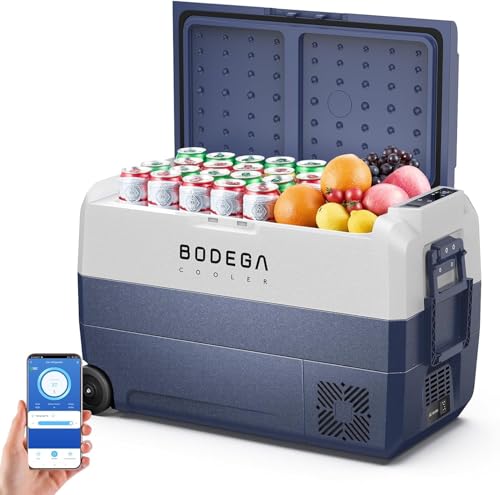 SINGLE ZONE AND APP CONTROL CAR FRIDGE:BODEGACOOLER 12 Volt refrigerator is only one zone, total capacity is 50L(53 Quart).This powerful rv fridge can hold 57 cans cola,or 31 bottles water or 18 bottles red wine.It's up to you to decide to use as the freezer or fridge zone.Our car refrigerator support Bluetooth control.