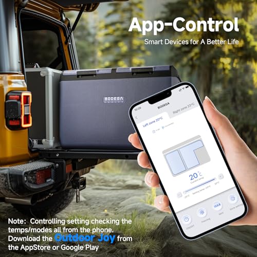?APP CONTROL & VOLTAGE PROTECTION?Upgraded Bluetooth connection car refrigerator. BODEGACOOLER car fridge with APP control, you can control the freezer from distance or in car.Intelligent temperature control function to meet the required temperature of various ingredients. H/M/L 3-level low-voltage protection:When the measured DC voltage falls below the cut-off value, the compressor will off to prevent the vehicle from running out of power.