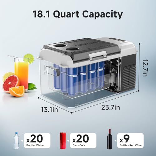 Portable Car Freezer: BODEGACOOLER car refrigerator offering a practical 18 Quart capacity, which is the perfect companion for your short trips. It can work as both a fridge and a freezer, allowing truck drivers, boat owners, and campers to store a variety of food and drinks for longer journeys. Its compact size and easy portability make it convenient for travel, enabling you to fully enjoy your adventures.