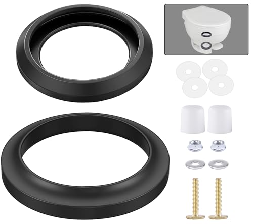 RV Toilet Parts Includes: RV Toilet Seal Kit includes 1pc Waste Ball Seal (for center flush position), 1pc RV Toilet Seal (for bottom drain position), 4pcs Plastic Washers, and 1 set of bolt fittings with 2pcs toilet bolt caps