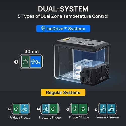 IceDrive: The Aspen portable refrigerator has a regular dual zone system and an IceDrive system. In addition to having the regular dual zone control system, we have additionally designed the IceDrive system, which keeps the s zone always below 0°F and allows you to store colder foods, such as ice cream