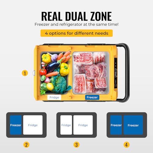 Dual Zone Dual Door: This 12V portable refrigerator has a dual zone and double door, so you can control the temperature separately for true dual-zone temperature control. It can be used as both a refrigerator and freezer, but also as a fridge/freezer, refrigerator/freezer, or freezer/freezer, opening the door separately will not affect the cooling of another zone
