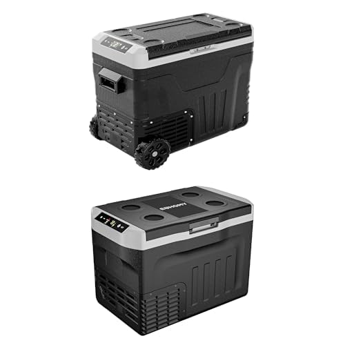 Two Zones & Mobile Design; The portable fridge features two storage zones to effectively reduce odors. With a 53Quart large capacity, two storage baskets, and a removable divider, the portable refrigerator is convenient to store and access all your food. The 12 volt refrigerator comes with dual handles and off-road wheels, making it portable and easy to move, lightening your load on the journey