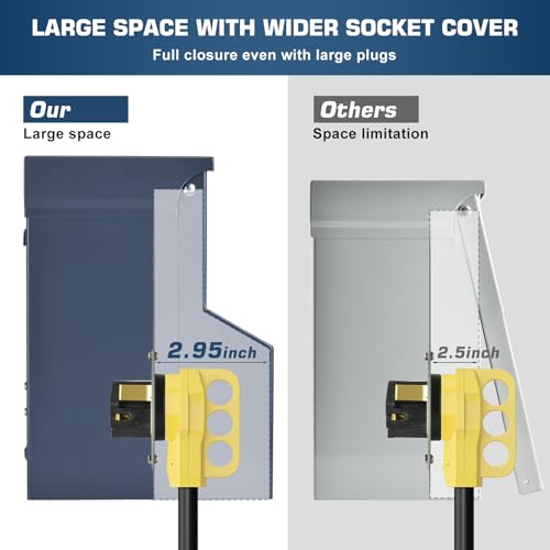 Oversized Access Panel for Easy Maintenance?: Our RV power outlet box features an extra-wide design with a 3 inch closed panel height. This ensures the cover can fully close even when connected to plugs with large handles or heavy-duty cords, eliminating concerns about incomplete closure due to bulky connectors