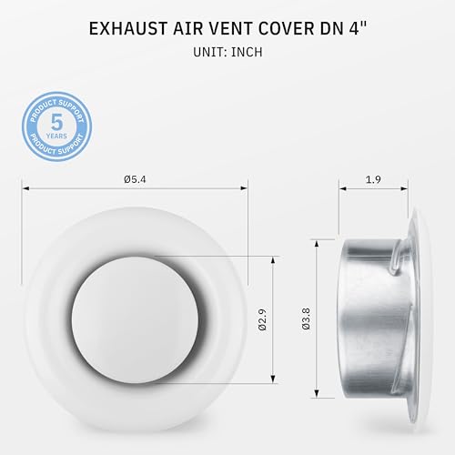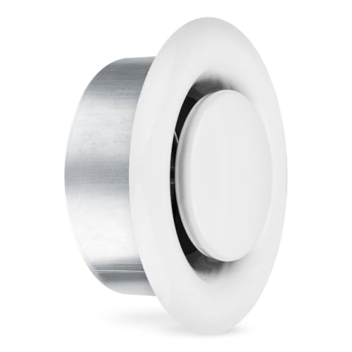 ?? FEATURES The easy installable 4” steel valve in white (RAL9016) with mounting frame has an adjustable, centrically arranged, rotatable front plate which you can vary the outflow of air. The outside diameter of the grille is 5.5 inches