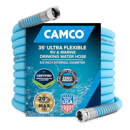 Professional Plus Drinking Water Hose: Camco's EvoFlex Professional Plus RV fresh water hose is lead, BPA, & phthalate-free. This quality PVC hose prioritizes your health with every use.