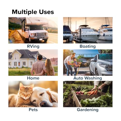 Versatile Applications: Get ready for versatile outdoor tasks with this 25' long drinking hose, featuring a 1/2" inner diameter. It's perfect for RVing, camping, boating, gardening, pet cleaning, car washing, and lawncare. The easy-on grip connect makes handling a breeze.