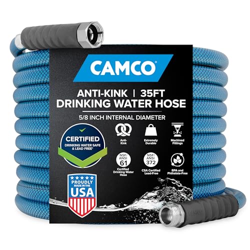 Professional Grade Drinking Water Hose: Camco's Professional Grade RV fresh water hose is constructed with NSF/ANSI 61 certified hose for drinking water. Lead, BPA, & phthalate-free, this quality PVC hose prioritizes your health with every use.