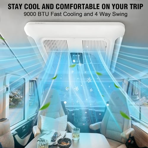 ?????Inverter Cooling & Low-noise Tech?Our inverter RV air conditoner will adjusts its operating frequency to the environment, thus reducing energy consumption. The a/c unit is equipped with a household-type ultra-quiet evaporator, intelligent temperature control, and operation below 45dB to create a comfortable space.