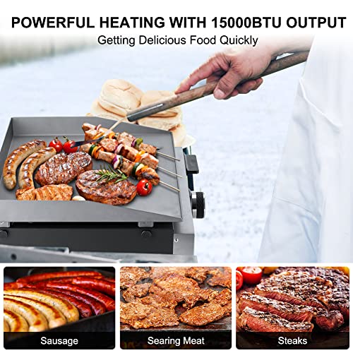 ?Grill and Griddle Combo?--171 sq. In for grill and 278 sq. In for flat top griddle (pre-seasoned with organic oil). Compact and lightweight enough to be taken anywhere. Ideal for RV traveling, outdoor cooking and fuelled Restaurant