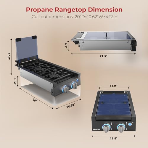 ?Compact & Slide-in Design?12? gas cooktop only takes up little space, perfect for RVs, tiny houses, mobile homes, apartments, food trucks